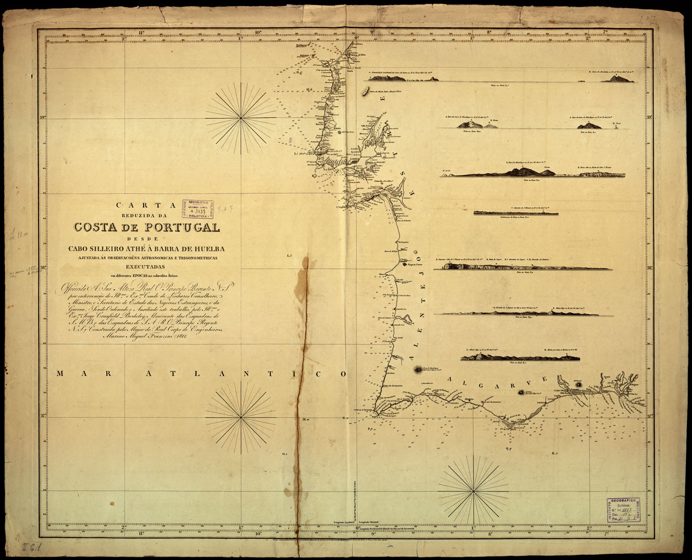 CARTA REDUZIDA DA COSTA DE PORTUGAL DESDE CABO SILLEIRO ATHE' A' BARRA DE HUELBA.