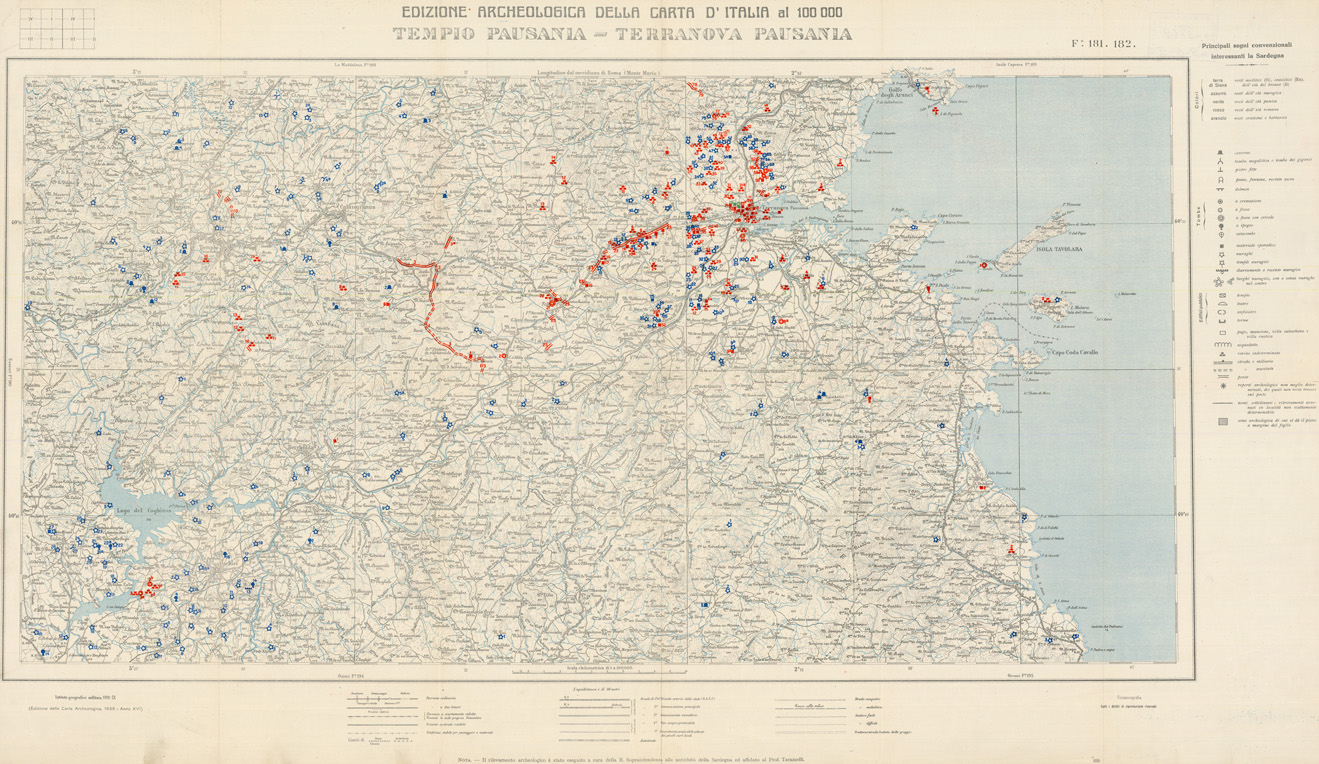 EDIZIONE ARCHEOLOGICA DELLA CARTA D'ITALIA FOGLIO 181-182 TEMPIO PAUSANIA - TERRANOVA PAUSANIA