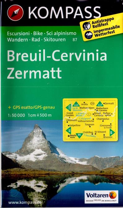 Breuil, Cervinia, Zermatt KOM 87 - touristic and hiking map