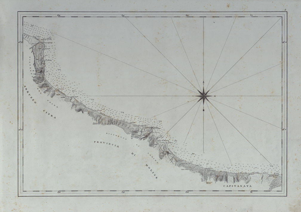 CARTA DI CABOTAGGIO DELLA COSTA DEL REGNO DELLE DUE SICILIE BAGNATA DALL'ADRIATICO DAL FIUME TRONTO AL CAPO DI S.TA MARIA DI LEUCA ESEGUITA NEL REALE OFFICIO TOPOGRAFICO. NAPOLI, 1834 - TAVOLA 3.