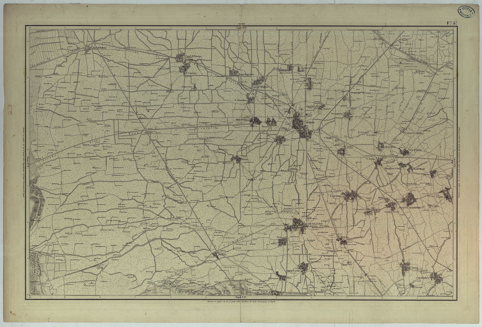 CARTA TOPOGRAFICA ED IDROGRAFICA DEI CONTORNI DI NAPOLI LEVATA PER ORDINE DI S.M. FERDINANDO I RE DEL REGNO DELLE DUE SICILIE DAGLI UFFIZIALI DELLO STATO MAGGIORE E DALL'INGEGNERI TOPOGRAFI NEGLI ANNI 1817-1818-1819 - FOGLIO 5.
