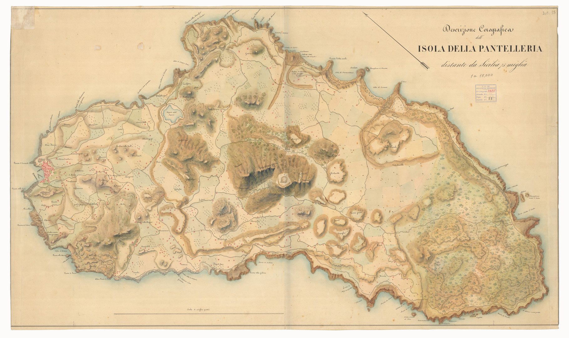 DESCRIZIONE COROGRAFICA DELL'ISOLA DELLA PANTELLERIA DISTANTE DA SICILIA 75 MIGLIA