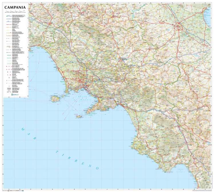 Campania (linen paper with wood poles) - wall geographical map