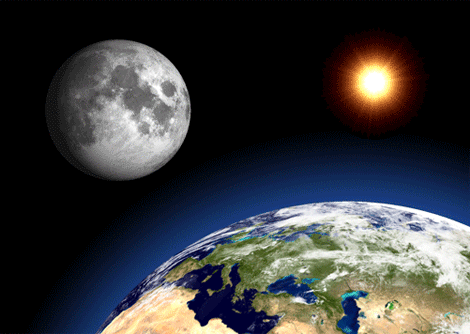 Earth, Moon and Sun (card with 3D picture)