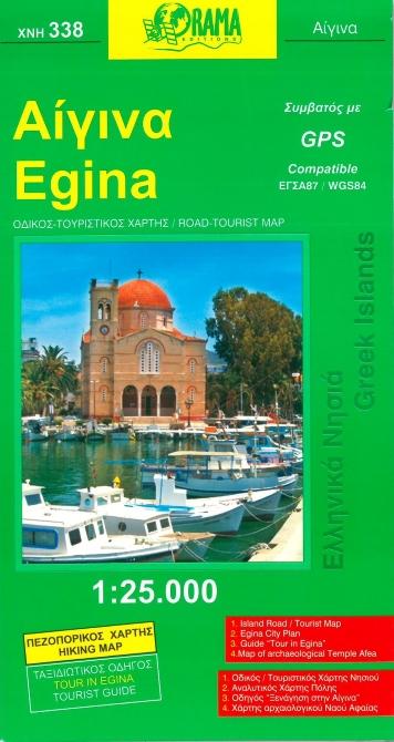 Island of Greece. Travel map and with altimetrical lines