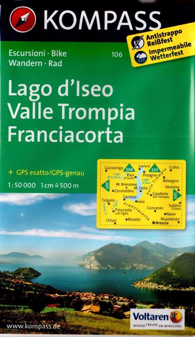 Lago d'Iseo, Franciacorta KOM 106 - touristic and hiking map