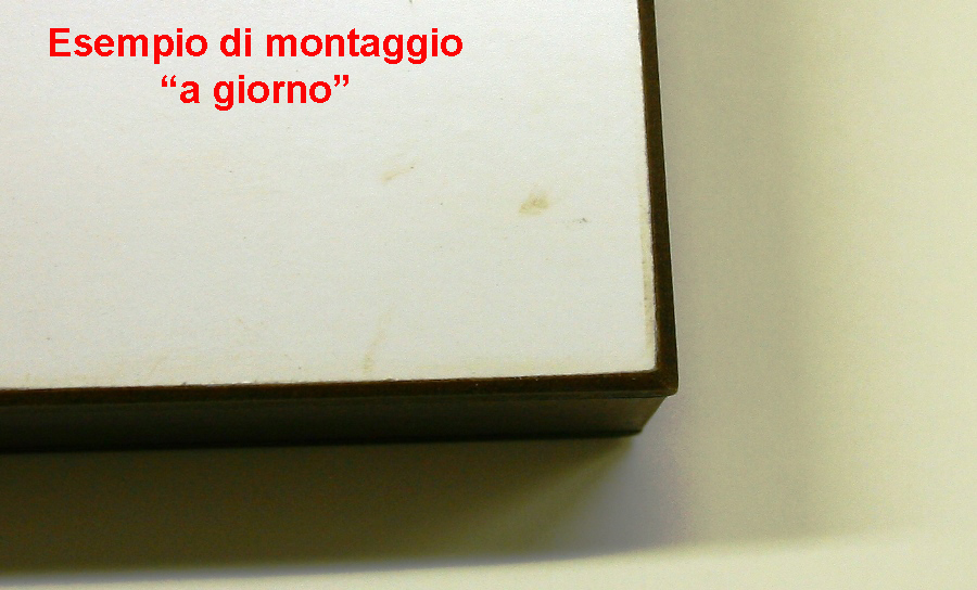 Montaggio della carta murale su pannello SMALL con bordo in legno color nero o noce (indicare la preferenza del colore nelle note a completamento dell'ordine). Finitura dell'incorniciatura cosiddetta a giorno. Il pannello SMALL si adatta alle carte di larghezza fino a 140 cm.