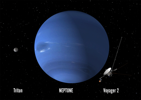 Neptune, Triton, Voyager 2 (card with 3D picture)
