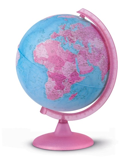 Illumidated globe. Political cartography. Smart girls learn geography with this stylish pink globe. Every country is represented by a different shade of pink. Budding fashionistas who want to learn without sacrificing style know that this is the globe for them!