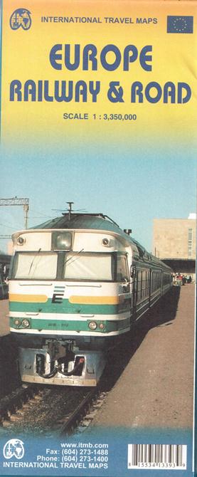 Railways Europe - road and touristic geographical map