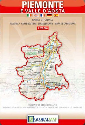 Region Piedmont and Aosta Valley - road and touristic geographical map