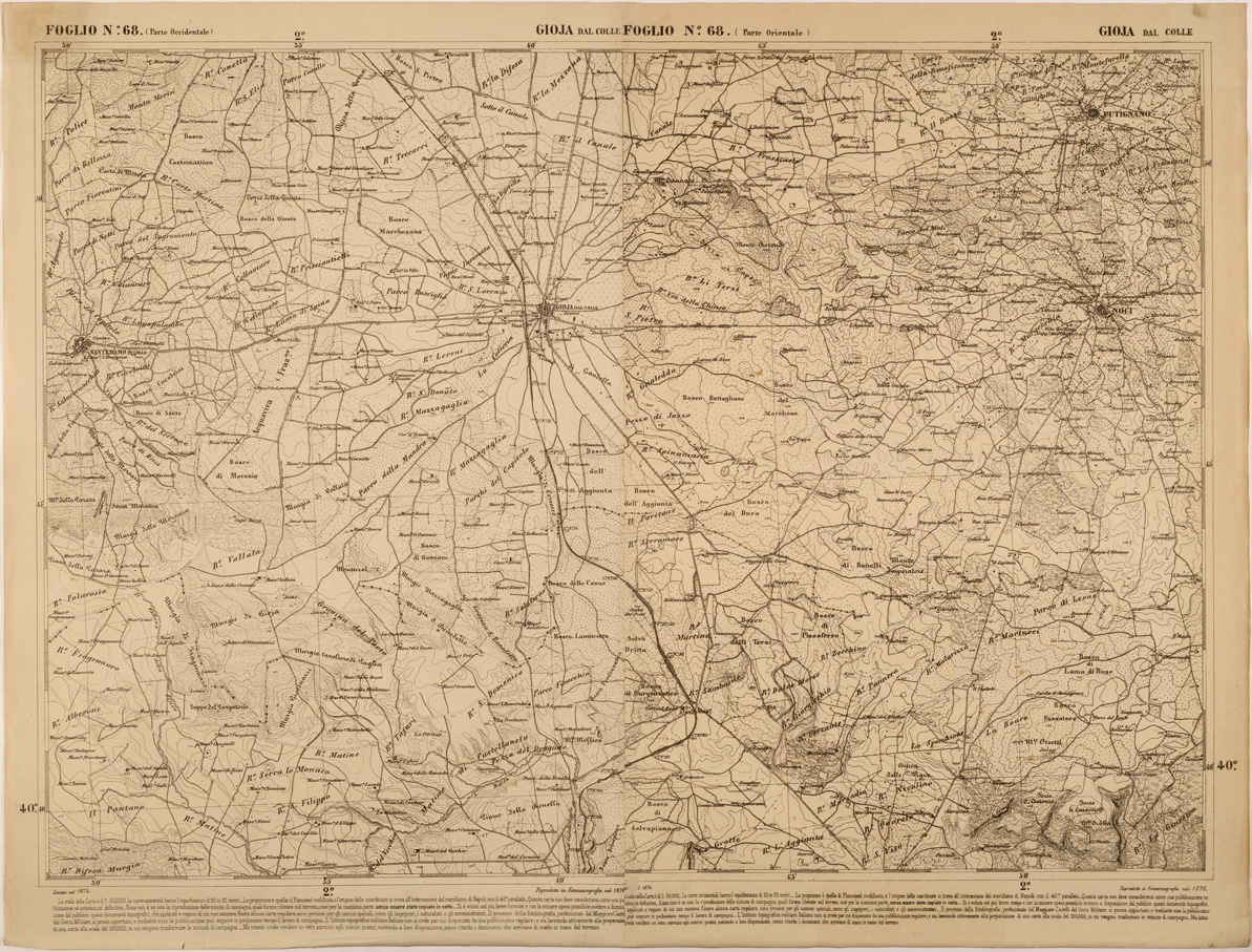 "Carta realizzata negli anni successivi all' unità d' Italia dall' appena istituito Ufficio Tecnico dello Stato Maggiore, poi divenuto Istituto Topografico Militare, attuale IGM, al fine di avere una copertura cartografica regolare di quelle regioni che ne erano sprovviste, nell' ottica di una successiva, generale unificazione cartografica nazionale."