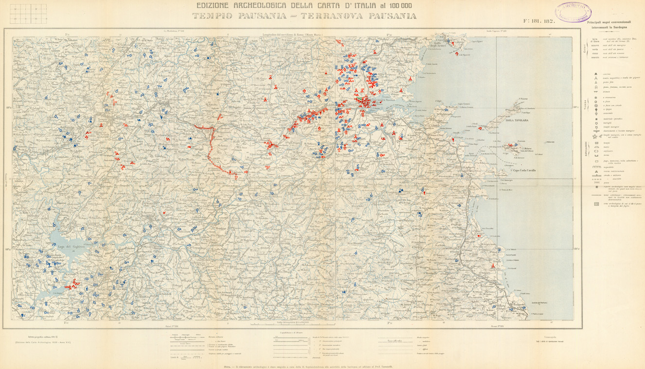 EDIZIONE ARCHEOLOGICA DELLA CARTA D'ITALIA FOGLI 181-182 TEMPIO PAUSANIA-TERRANOVA PAUSANIA