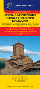 Serbia Montenegro Bosnia Herzegovina Macedonia - road and touristic geographical map