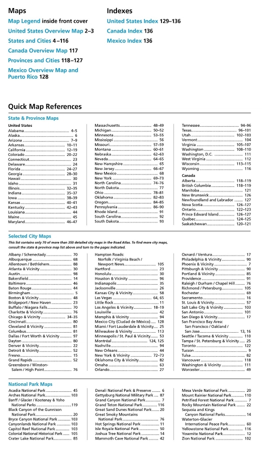 - Updated U.S. atlas contains maps of every U.S. state and Canadian province, an overview of Mexico, and detailed inset maps of over 350 cities and 20 U.S. national parks