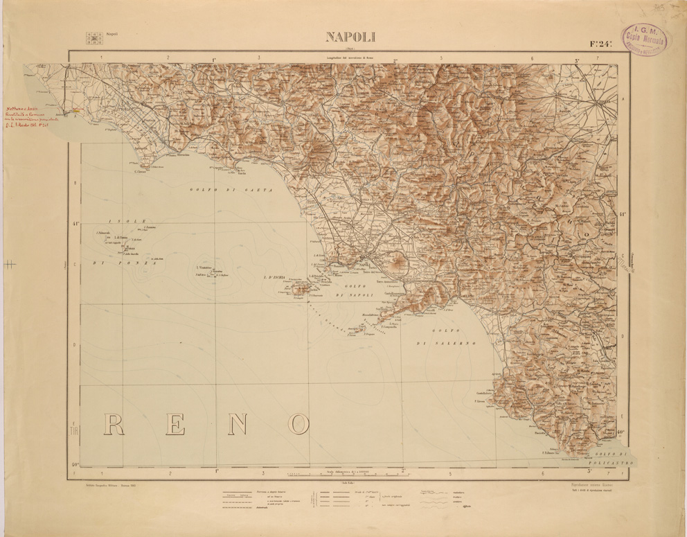 CARTA COROGRAFICA DEL REGNO D'ITALIA E DELLE REGIONI ADIACENTI EDIZIONE 1935-1937 FOGLIO 24 NAPOLI
