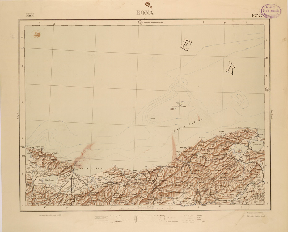 CARTA COROGRAFICA DEL REGNO D'ITALIA E DELLE REGIONI ADIACENTI EDIZIONE 1935-1937 FOGLIO 32 BONA