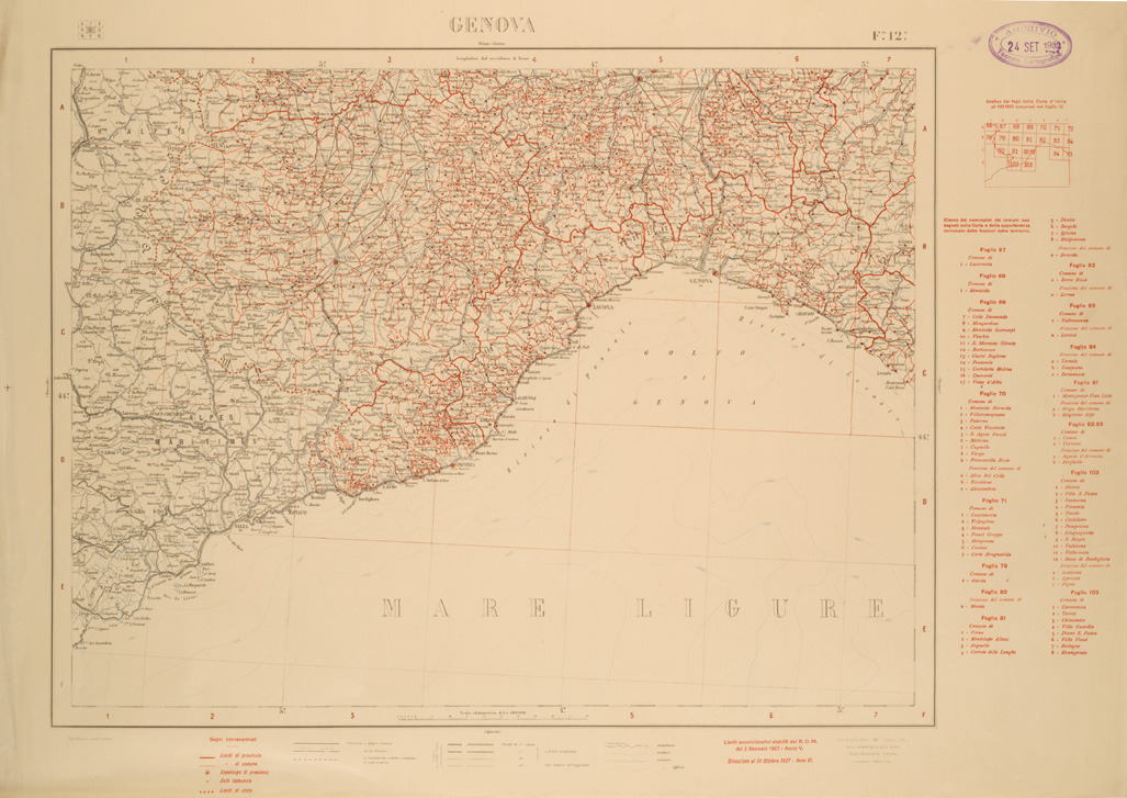 CARTA COROGRAFICA D'ITALIA FOGLIO 12 GENOVA