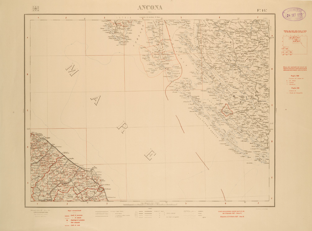 CARTA COROGRAFICA D'ITALIA FOGLIO 14 ANCONA