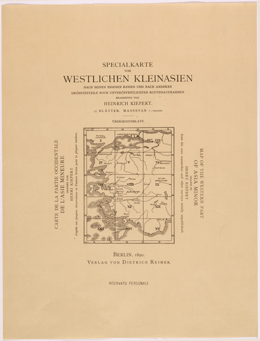 "Carta in 15 fogli più un quadro d' unione e un allegato al foglio VI rappresentante la continuazione della linea ferroviaria fino ad Angora."