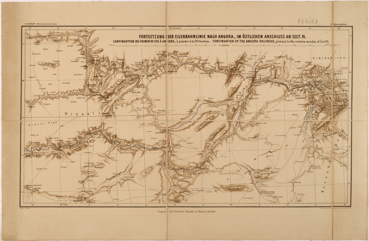 "Carta in 15 fogli più un quadro d' unione e un allegato al foglio VI rappresentante la continuazione della linea ferroviaria fino ad Angora."
