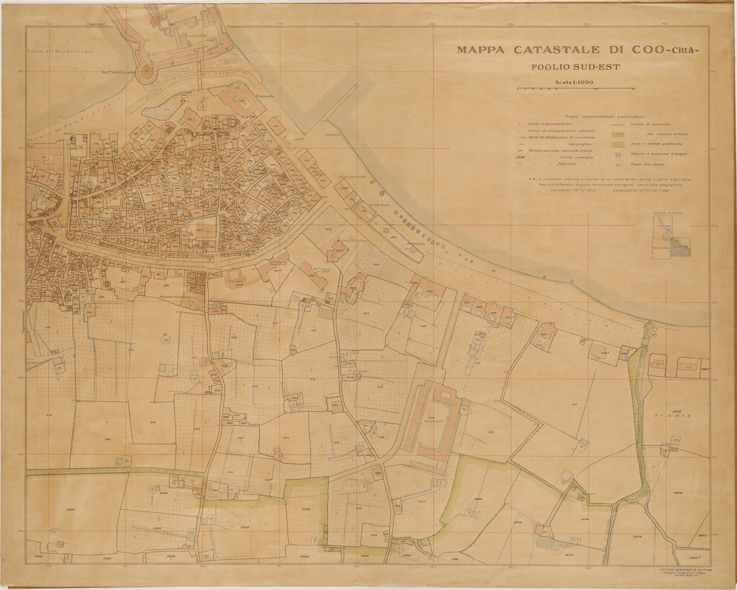CATASTO DELLE ISOLE DELL' EGEO - ESEMPIO DI MAPPA PER GLI ABITATI