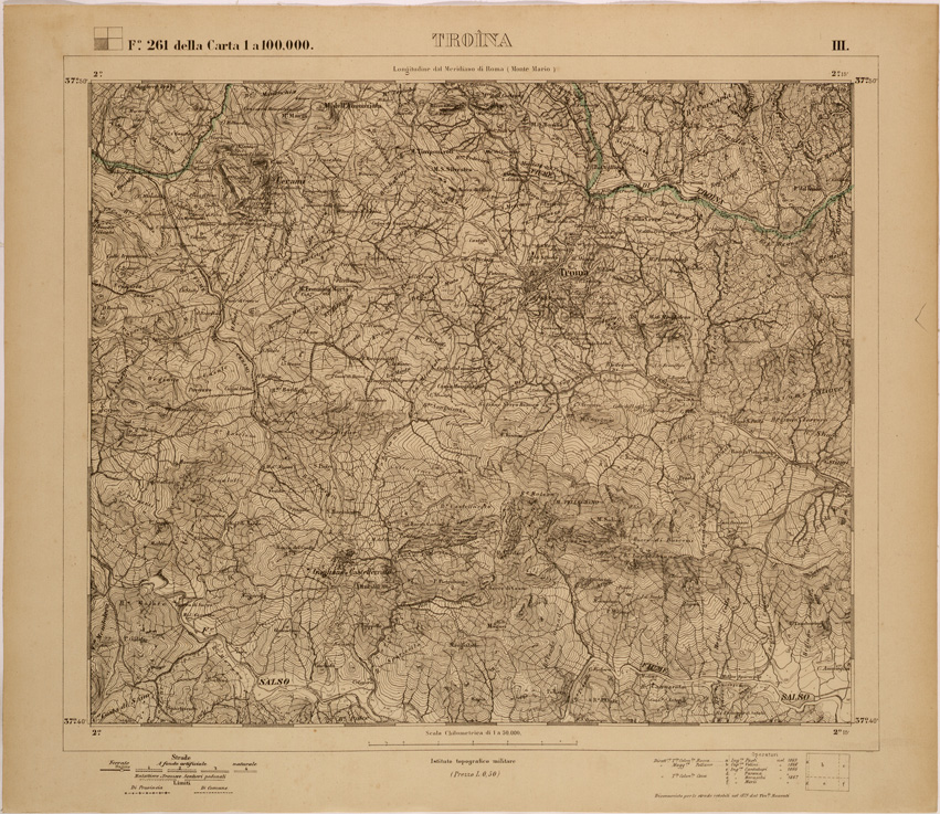 I rilevamenti topografici per la realizzazione della “Carta d´Italia&lrquo” iniziarono nel 1878: si trattava di un´opera così importante e lodevole che meritò la consapevole attenzione, non solo degli addetti ai lavori e delle categorie professionali coinvolte, ma anche delle più alte autorità del Regno.