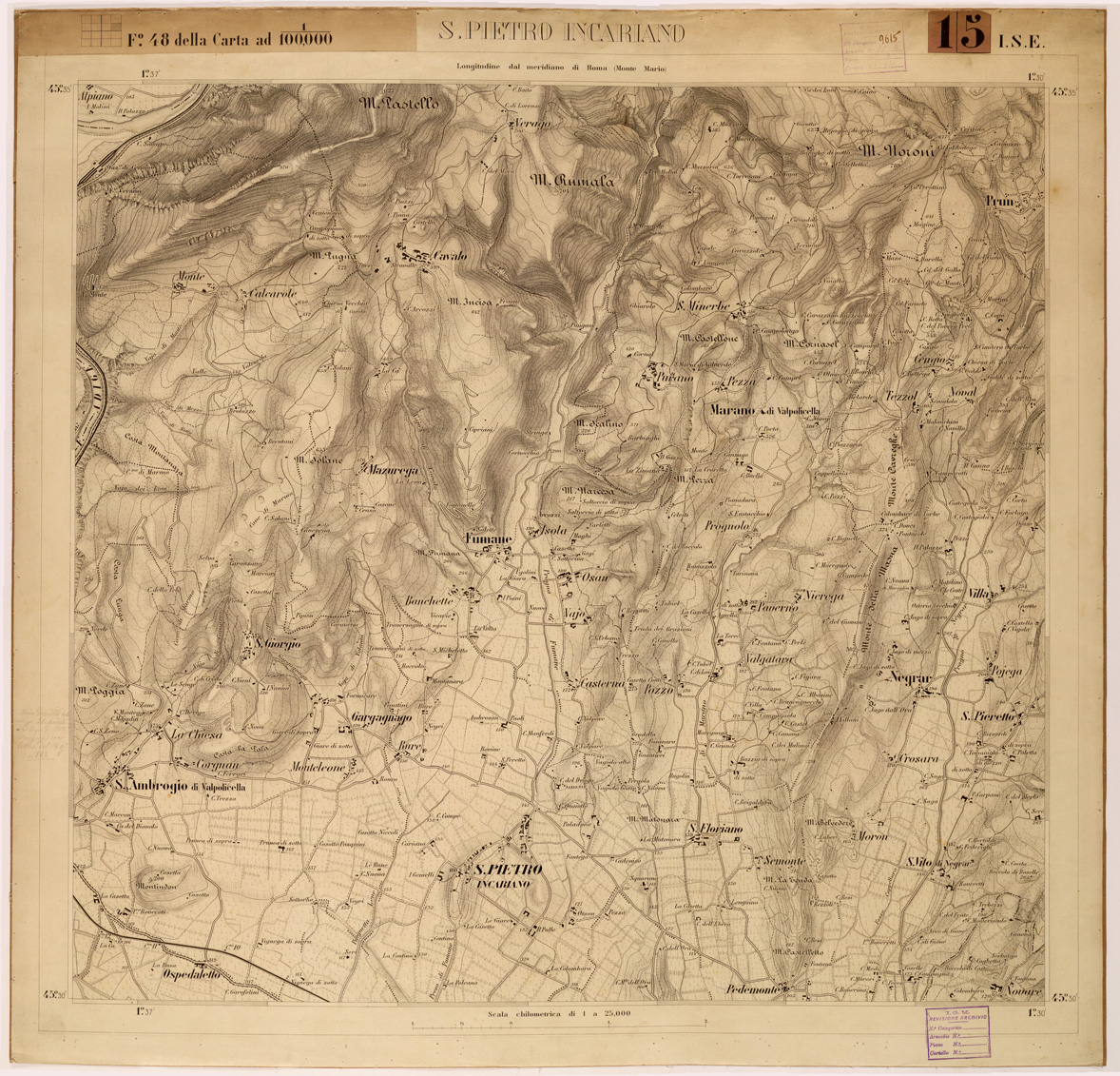 "Originali alla scala di 1:15.000 disegnati per la successiva stampa alla scala di 1:25.000 da Soldati Allievi della Scuola Superiore di Guerra dai rilievi alla scala di 1:10.000 eseguiti negli anni dal 1867 al 1869"