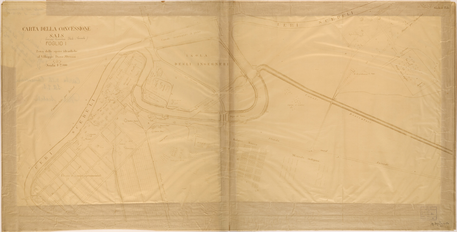 CARTA DELLA CONCESSIONE S.A.I.S. ( SOCIETA' ANONIMA ITALO SOMALA ) FOGLIO I OPERE IDRAULICHE AL VILLAGGIO DUCA DEGLI ABRUZZI