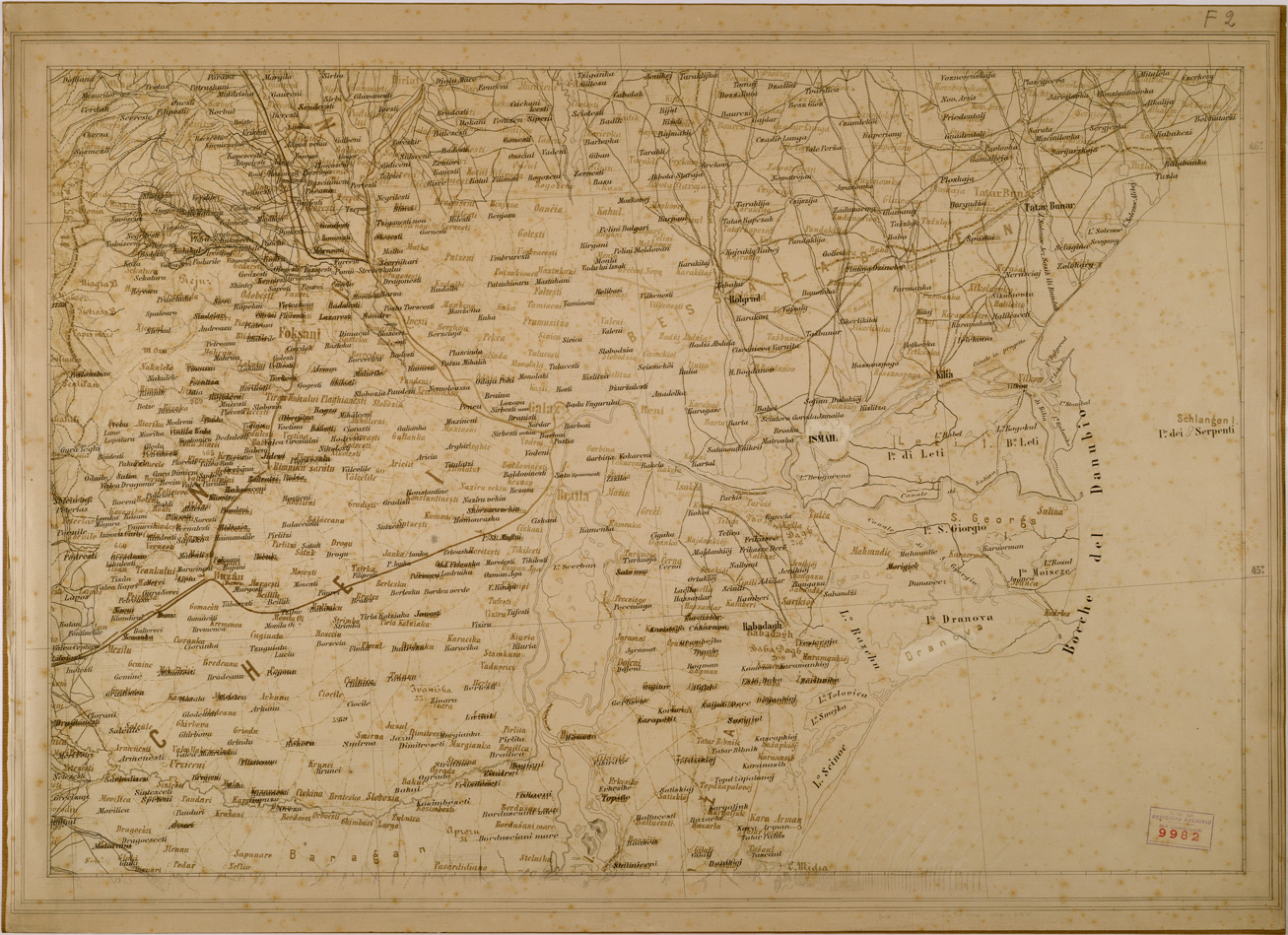 "Originali compilati presumibilmente nel 1888 ma non completati, in particolare, del foglio 1 ( Ploiesti ) sono disegnate la planimetria e le acque solo nell' angolo sud - est, del foglio 2 ( Bocche del Danubio ) è disegnata la toponomastica e parte della planimetria e delle acque, del foglio 3 ( Bucarest ) sono disegnate quasi completamente la toponomastica la planimetria e le acque mentre il tratteggio è solo iniziatio, il foglio 4 ( Varna ) è disegnato completamente. Dovevano servire per l' allestimento di una carta illustrativa della zona di guerra Russo Turca del 1877 - 1878 mai realizzata."