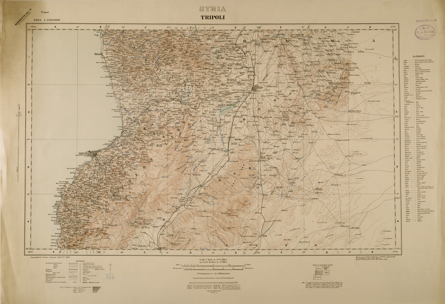 "Riproduzione da analoga carta del War Office Inglese, stampa IGM 1942"