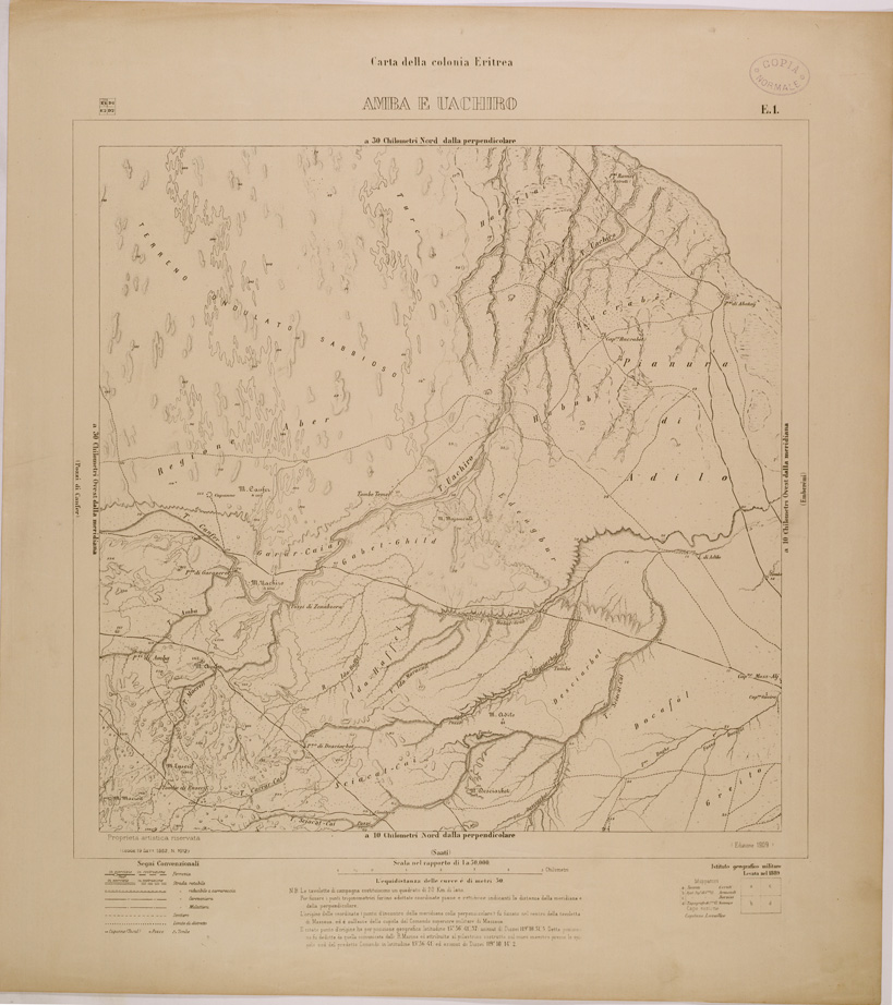 CARTA DELLA COLONIA ERITREA - FOGLIO E1 - AMBA E UACHIRO