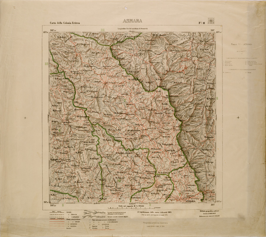CARTA DELLA COLONIA ERITREA LIMITI AMMINISTRATIVI FOGLIO 11 ASMARA