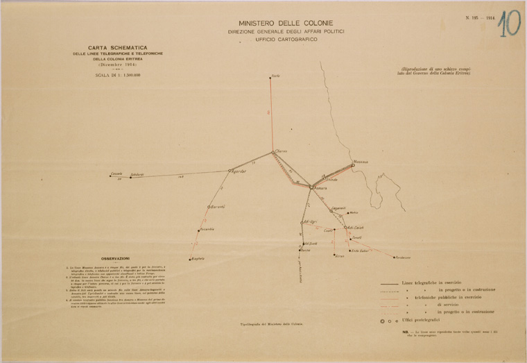 CARTA SCHEMATICA DELLE LINEE TELEGRAFICHE E TELEFONICHE DELLA COLONIA ERITREA