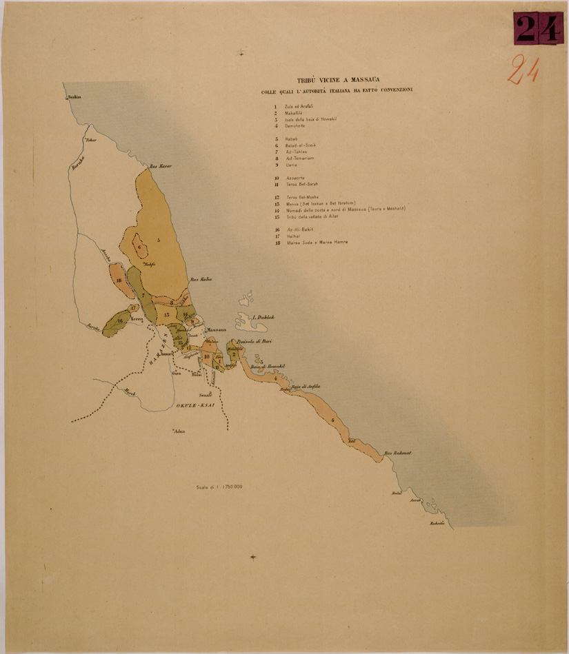 "Carta delle Tribù con le quali l' Autorità Italiana ha stipulato delle convenzioni, realizzata per il Comando del Corpo di Stato Maggiore."