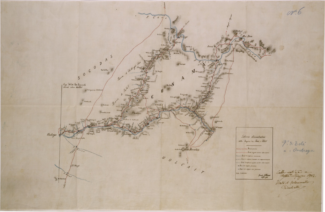 "Schizzo a vista eseguito durante il viaggio di S. E. Ferdinando Martini Governatore dell' Eritrea nella regione dei Cunama fra i fiumi Gasch e Setit nei mesi di Aprile e Maggio del 1902"