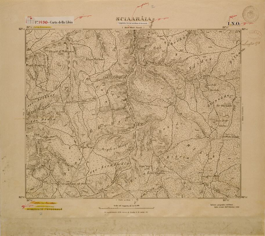"Cirenaica 1:25.000, monocolore a penna su carta da disegno. Ingrandimento dai rilievi al 50.000 fatti per il 100.000"
