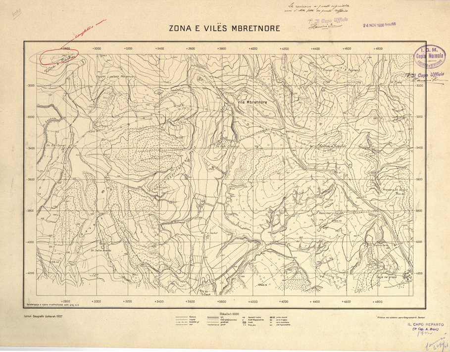"Carta derivata dai rilievi per la pianta di Tirana alla scala di 1:2.500 ( stesso categorico )"