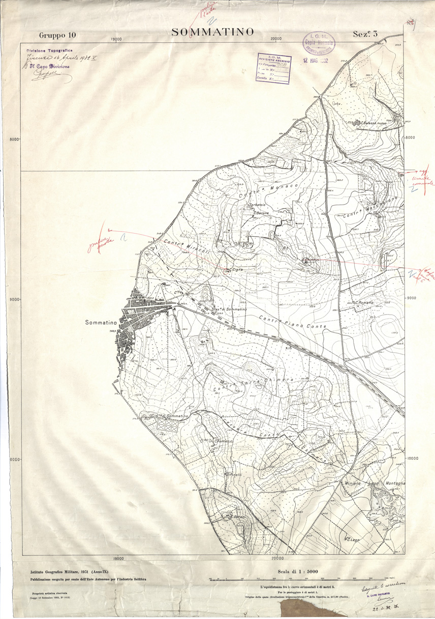 "Carta realizzata e pubblicata dall' IGM per conto dell' Ente Autonomo per l' Industria Solfifera, i rilievi furono eseguiti negli anni dal 1930 al 1933 e utilizzati in seguito anche per il completamento delle tavolette alla scala di 1:25.000 della Carta d' Italia."