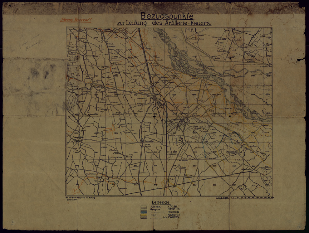 CARTINA PER ARTIGLIERIA AUSTRO-UNGARICA ZONA DI SPRESIANO