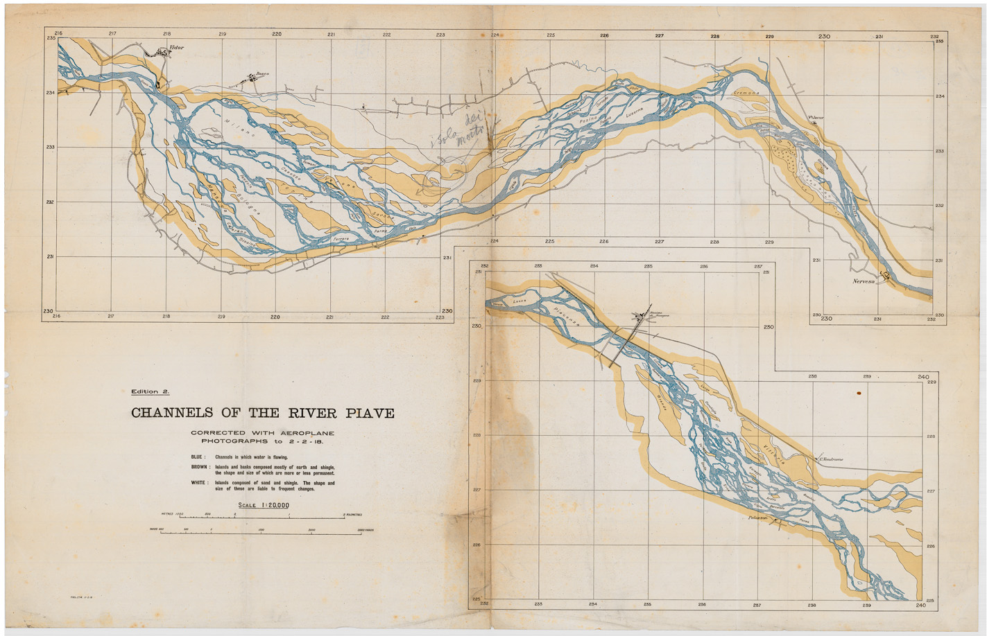 La “Grande Guerra” rallentò notevolmente l´attività topocartografica programmata e quasi tutte le energie dell´Istituto furono profuse per i lavori topografici di supporto alle operazioni militari. Dopo il trattato di pace i primi lavori cartografici riguardarono i territori redenti.