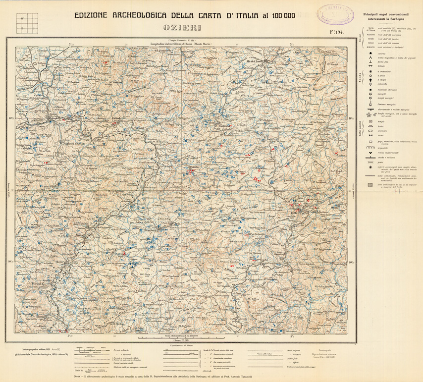 EDIZIONE ARCHEOLOGICA DELLA CARTA D'ITALIA FOGLIO 194 OZIERI