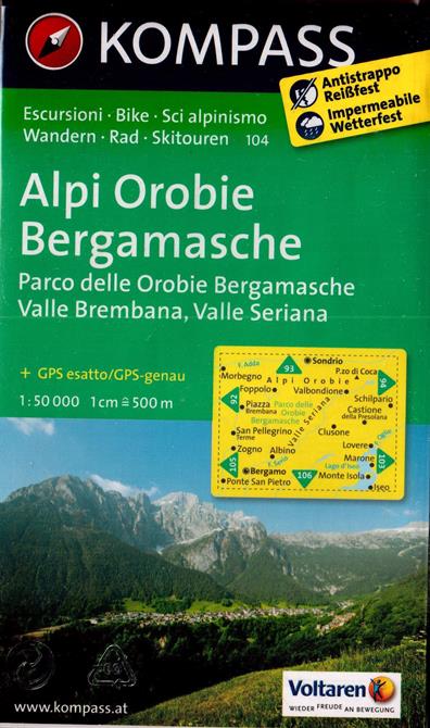 Alpi Orobie Bergamasche, Valle Brembana, Valle Seriana KOM 104 - carta geografica escursionistica