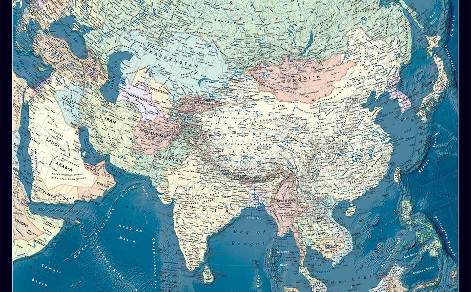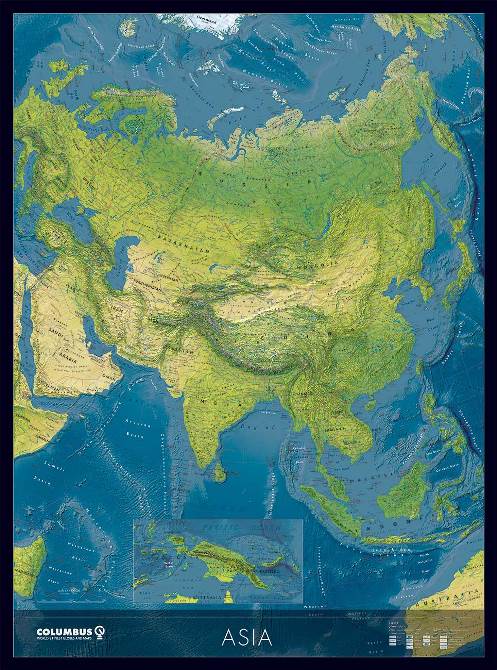 Carta murale bifontrale, con cartografia politica da un lato e fisica dall'altro.