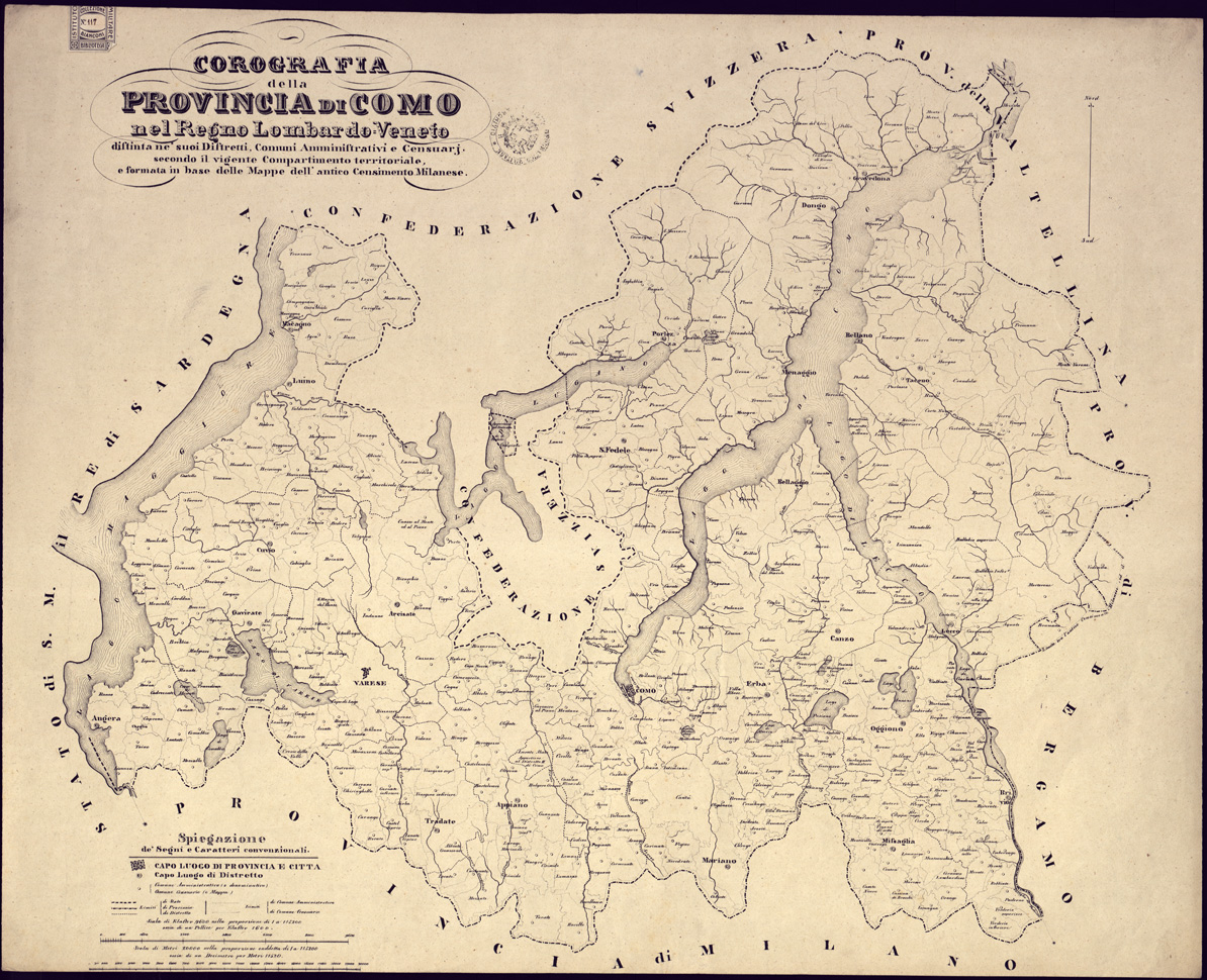 COROGRAFIE DELLE PROVINCIE DEL REGNO LOMBARDO-VENETO OGNUNA DELLE QUALI "DISTINTA NE' SUOI DISTRETTI E COMUNI CENSUARI, FORMATA IN BASE DELLE MAPPE DEL NUOVO CENSIMENTO" - Provincia di Como