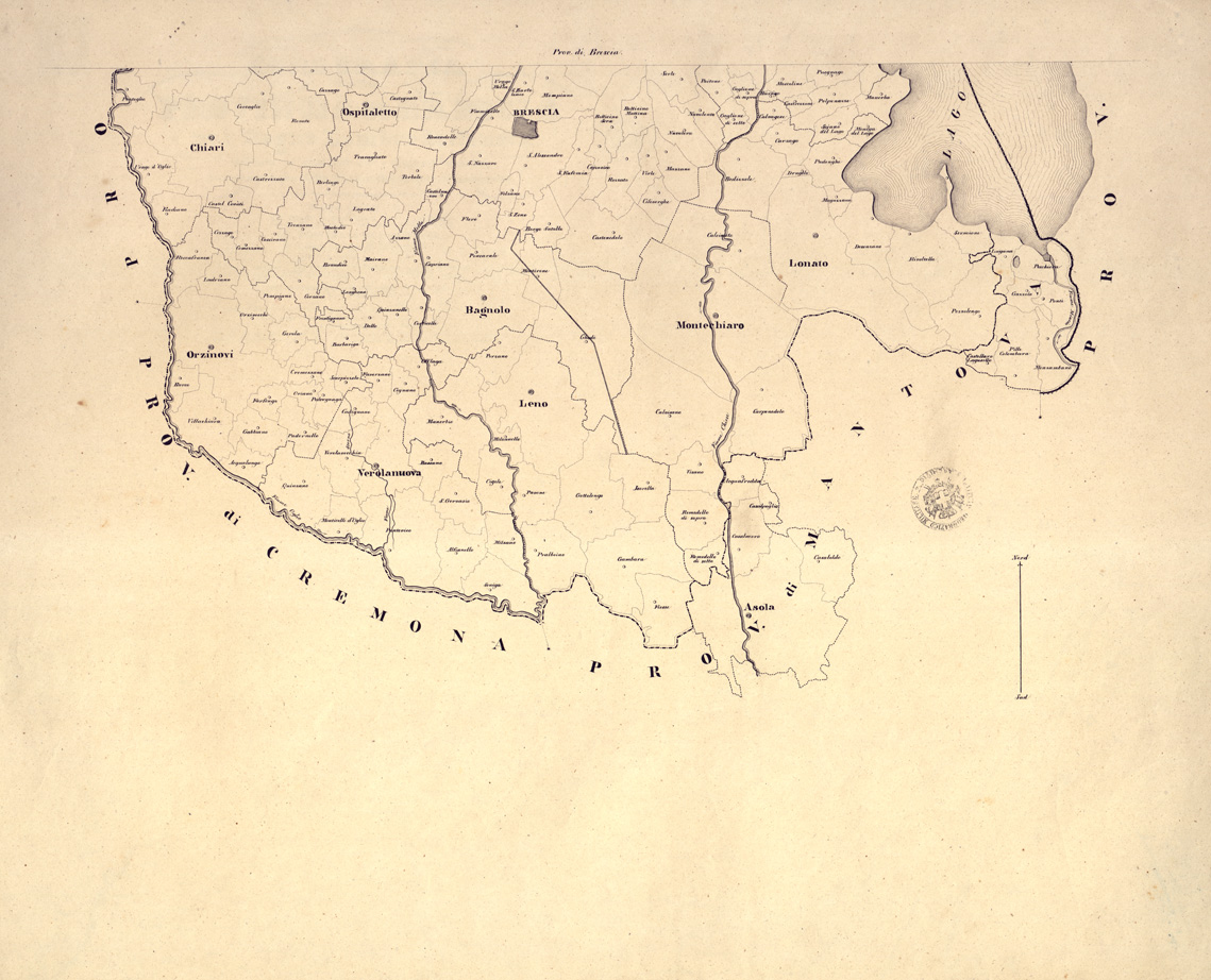 COROGRAFIE DELLE PROVINCIE DEL REGNO LOMBARDO-VENETO OGNUNA DELLE QUALI "DISTINTA NE' SUOI DISTRETTI E COMUNI CENSUARI, FORMATA IN BASE DELLE MAPPE DEL NUOVO CENSIMENTO" - Provincia di Brescia