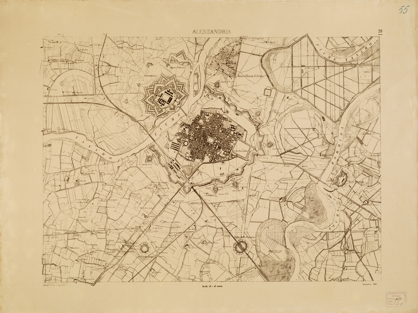 CARTA TOPOGRAFICA DELLA VALLE DEL PO' DA CASALE A PAVIA - Foglio 28 ALESSANDRIA