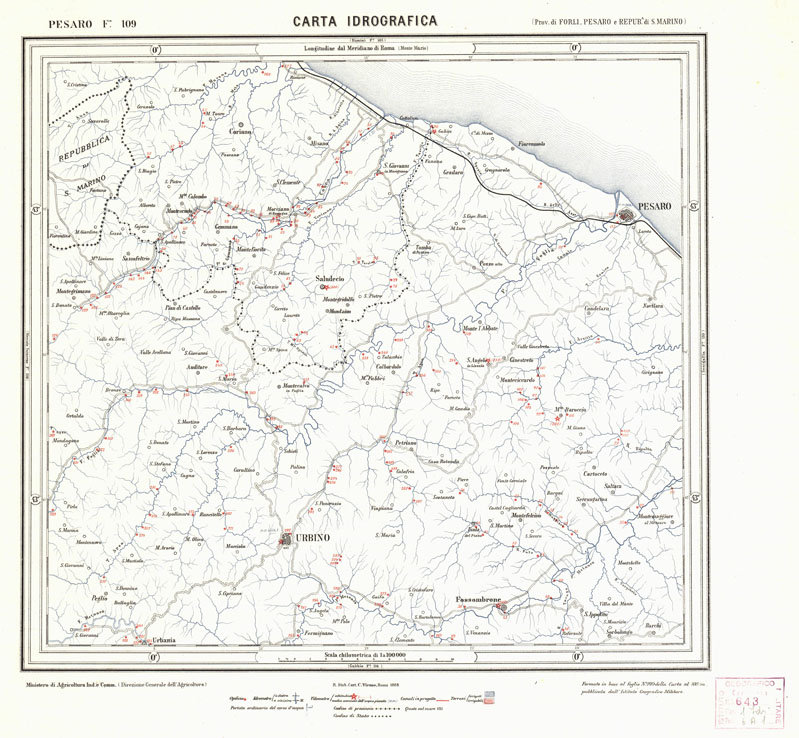 CARTA IDROGRAFICA DEL REGNO D'ITALIA - Foglio 109 - Pesaro