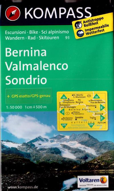 Bernina, Sondrio KOM 93 - carta geografica escursionistica