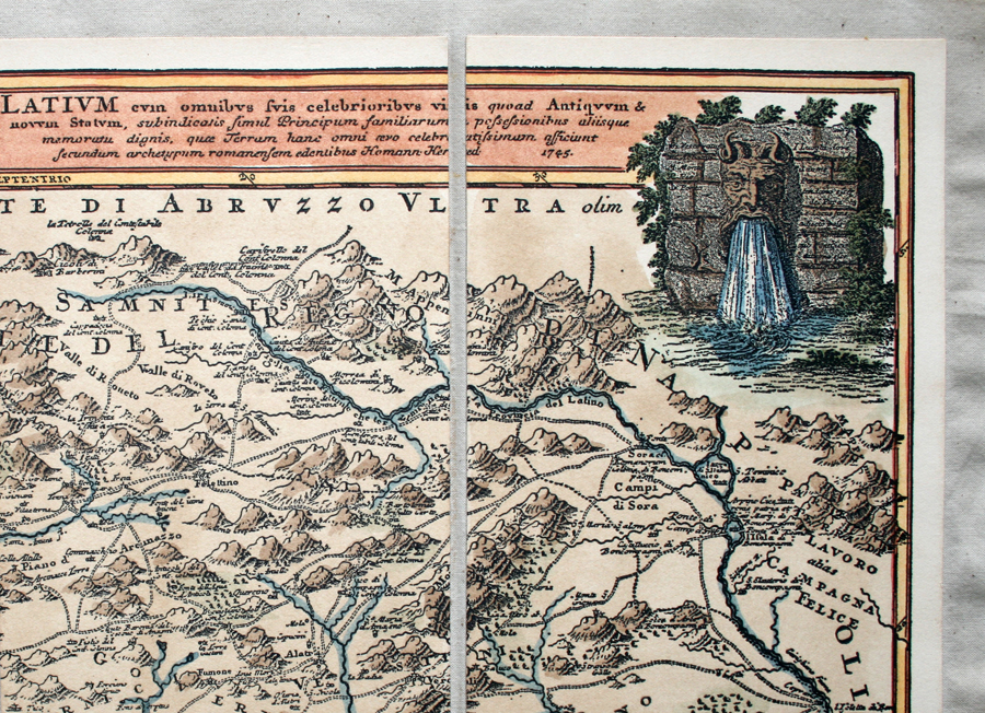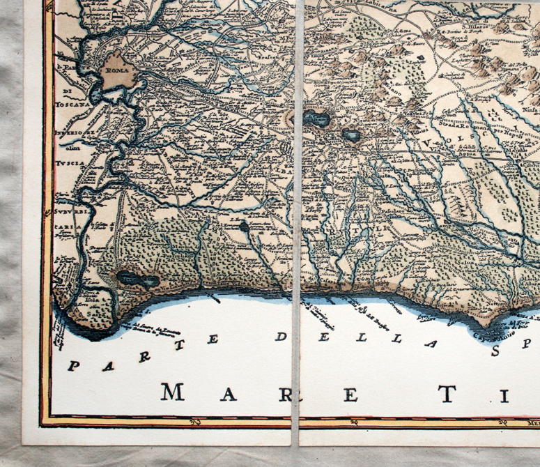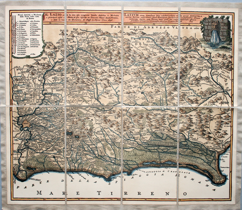 Il Lazio, Ameti, 1696 (incisione, colore) - riproduzione di carta antica